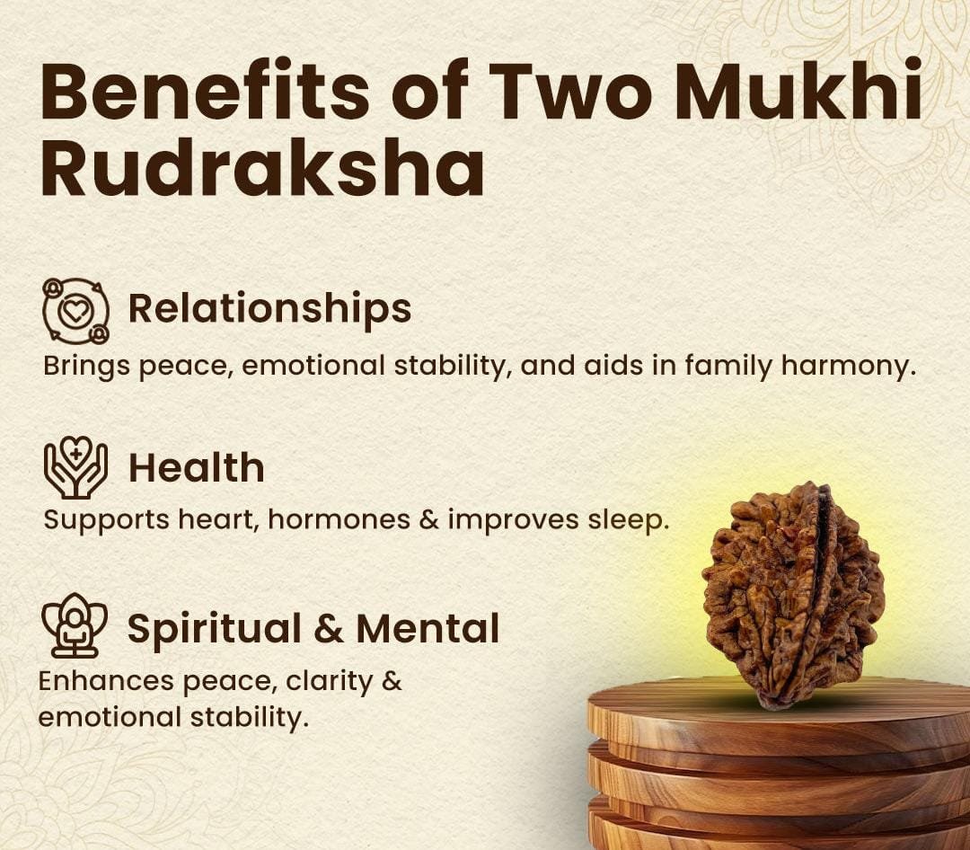 The?2 Mukhi Rudraksha?is a sacred bead that embodies the union of Lord Shiva and Goddess Parvati, symbolizing harmony, balance, and togetherness.