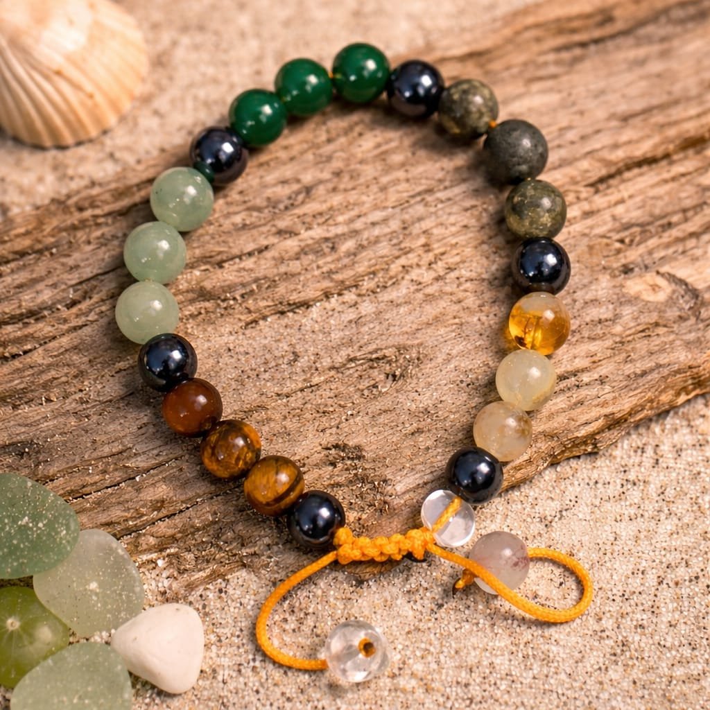 - Wealth Attraction: Combines powerful stones like Pyrite (fool’s gold) and Citrine, known for attracting money and financial prosperity.