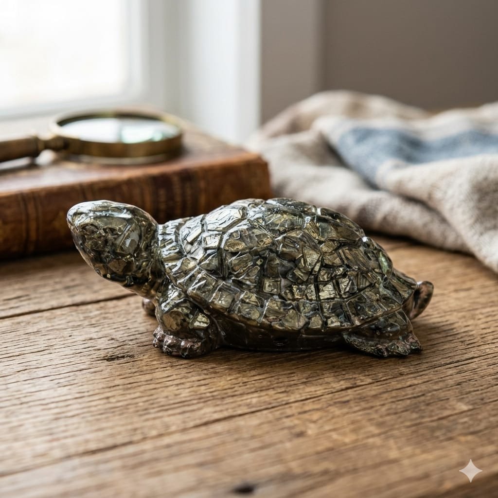 A Pyrite Kachua (tortoise) is a popular Vastu and Feng Shui remedy designed to attract wealth, prosperity, and protection. Combining the metal-attracting energy of natural pyrite with the stability of a tortoise, it is often placed in homes or offices to boost financial growth and positive energy.