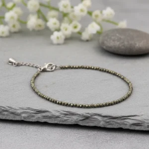 A pyrite anklet is believed to offer benefits such as protection from negative energies, attraction of wealth and abundance, and boosting confidence and willpower. It is also thought to provide grounding energy for stability, enhance mental clarity, and inspire motivation and persistence in achieving goals.