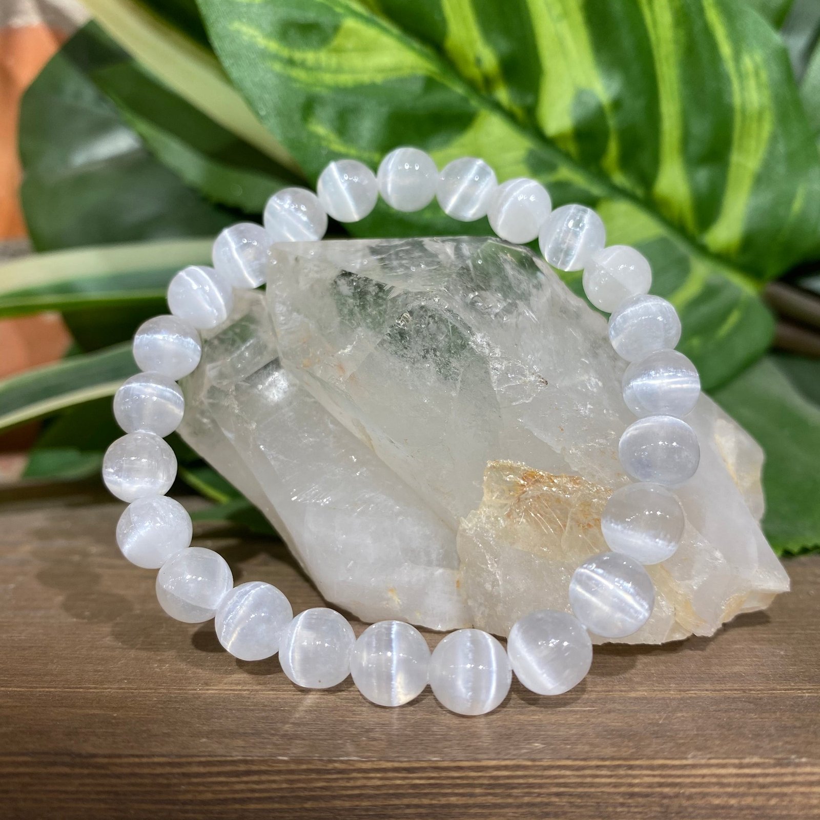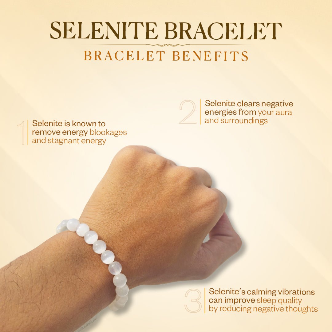 The Selenite Bracelet is a powerful crystal accessory known for its purifying, healing, and protective properties. With its radiant, milky-white glow, Selenite is often called the Stone of Clarity and Spiritual Awakening. It is deeply connected to the Crown and Third Eye Chakras, helping to enhance intuition, remove negativity, and bring inner peace. This bracelet is perfect for those seeking mental clarity, spiritual connection, and energy cleansing.