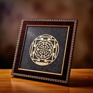 A Shree Yantra with a pyrite frame combines the spiritual and wealth-attracting properties of the Shree Yantra with the prosperity and protective qualities of pyrite, leading to benefits like attracting wealth and abundance, removing obstacles, and protecting against negativity. Placing it in the East or North-East direction is recommended for enhanced results.